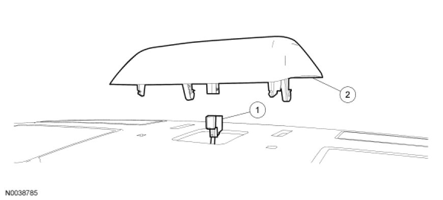 2. Push the high mounted stoplamp rearward to disengage the forward tabs and remove the high mounted stoplamp.