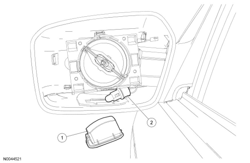 1. Remove the exterior mirror glass. For additional information, refer to Rear View Mirrors Exterior Mirror Glass.