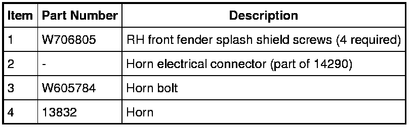 - Pull the RH front fender splash shield downward to access the horn.