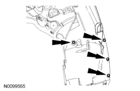 2. Remove the 4 pin-type retainers and position the fender splash shield aside.