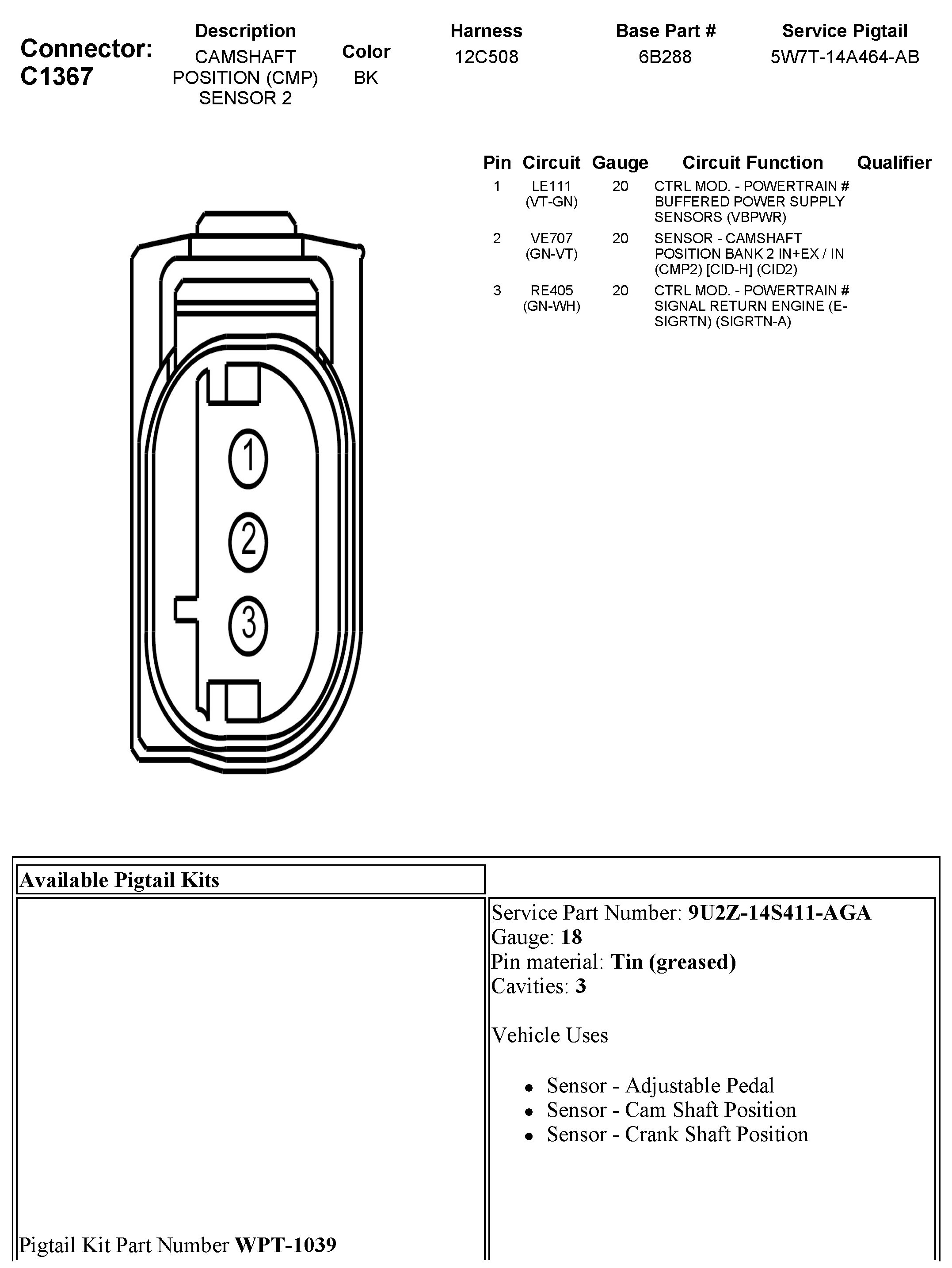 C1367 Camshaft Position (CMP) Sensor 2