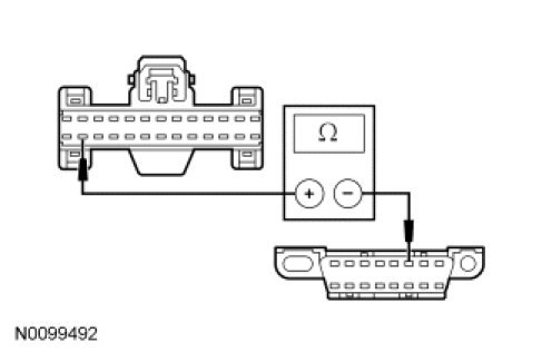 - Measure the resistance between the IPC C220-25, circuit VDB04 (WH/BU), harness side and the DLC C251-3, circuit VDB06 (GY/OG), harness side.