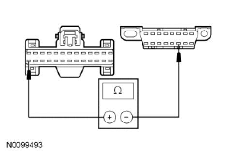 - Measure the resistance between the PCM C175b-59, circuit VDB04 (WH/BU), harness side and the DLC C251-6, circuit VDB04 (WH/BU), harness side.