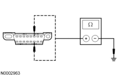 - Measure the resistance between the DLC C251-6, circuit VDB04 (WH/BU), harness side and ground; and between the DLC C251-14, circuit VDB05 (WH), harness side and ground.