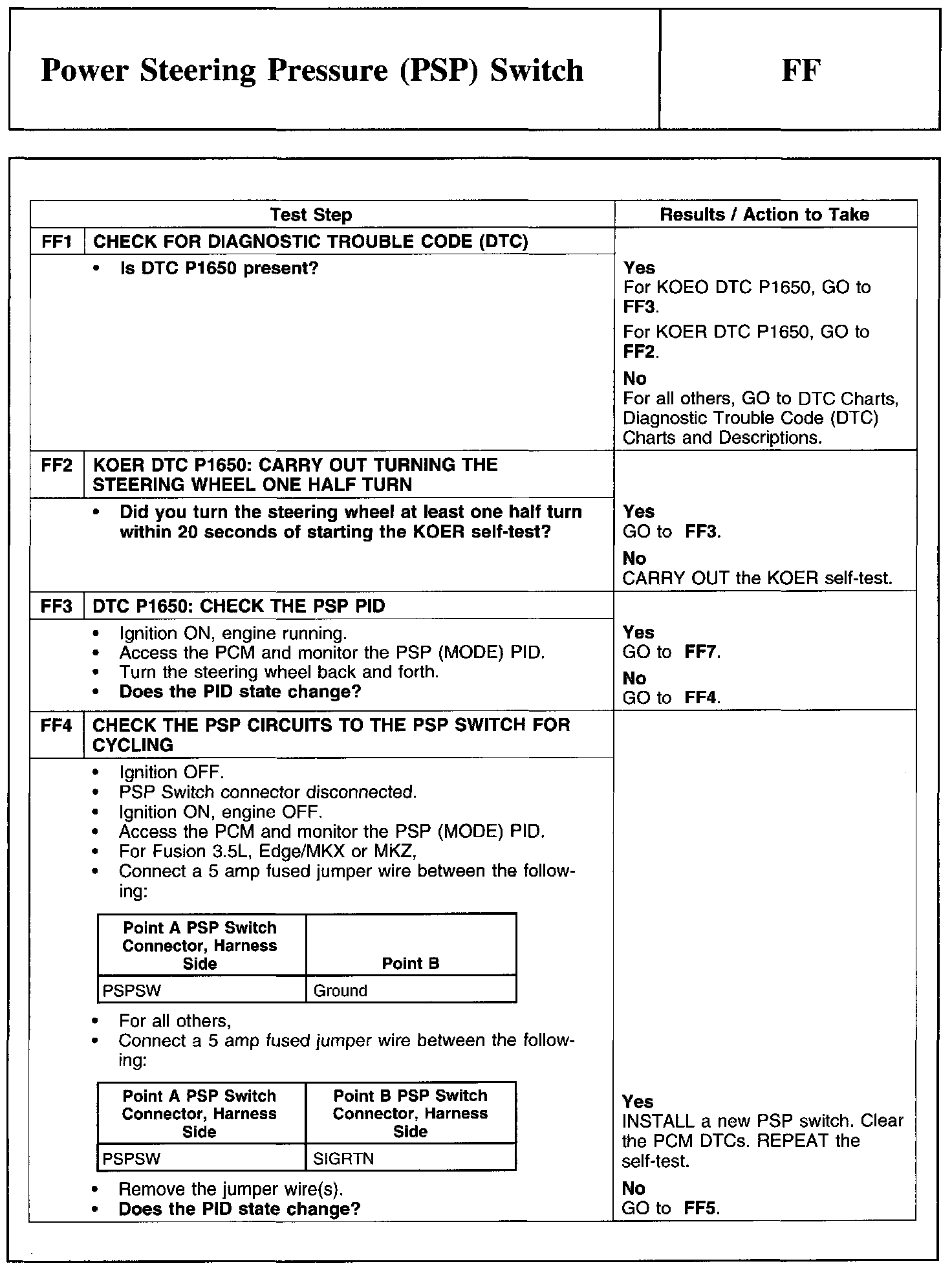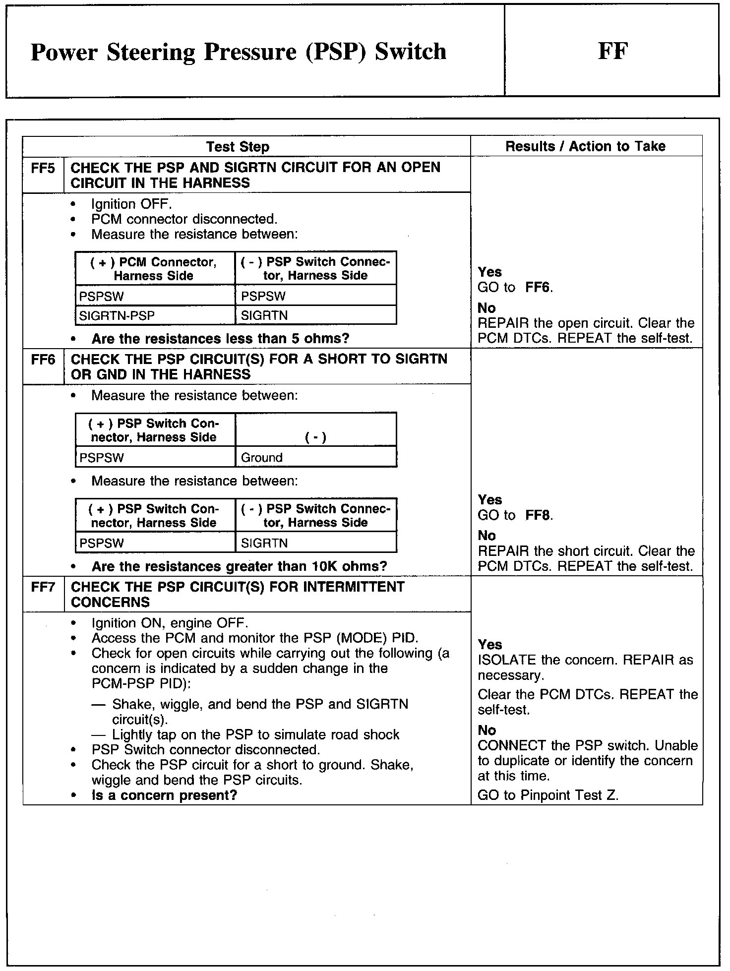 Test FF: Power Steering Pressure (PSP) Switch