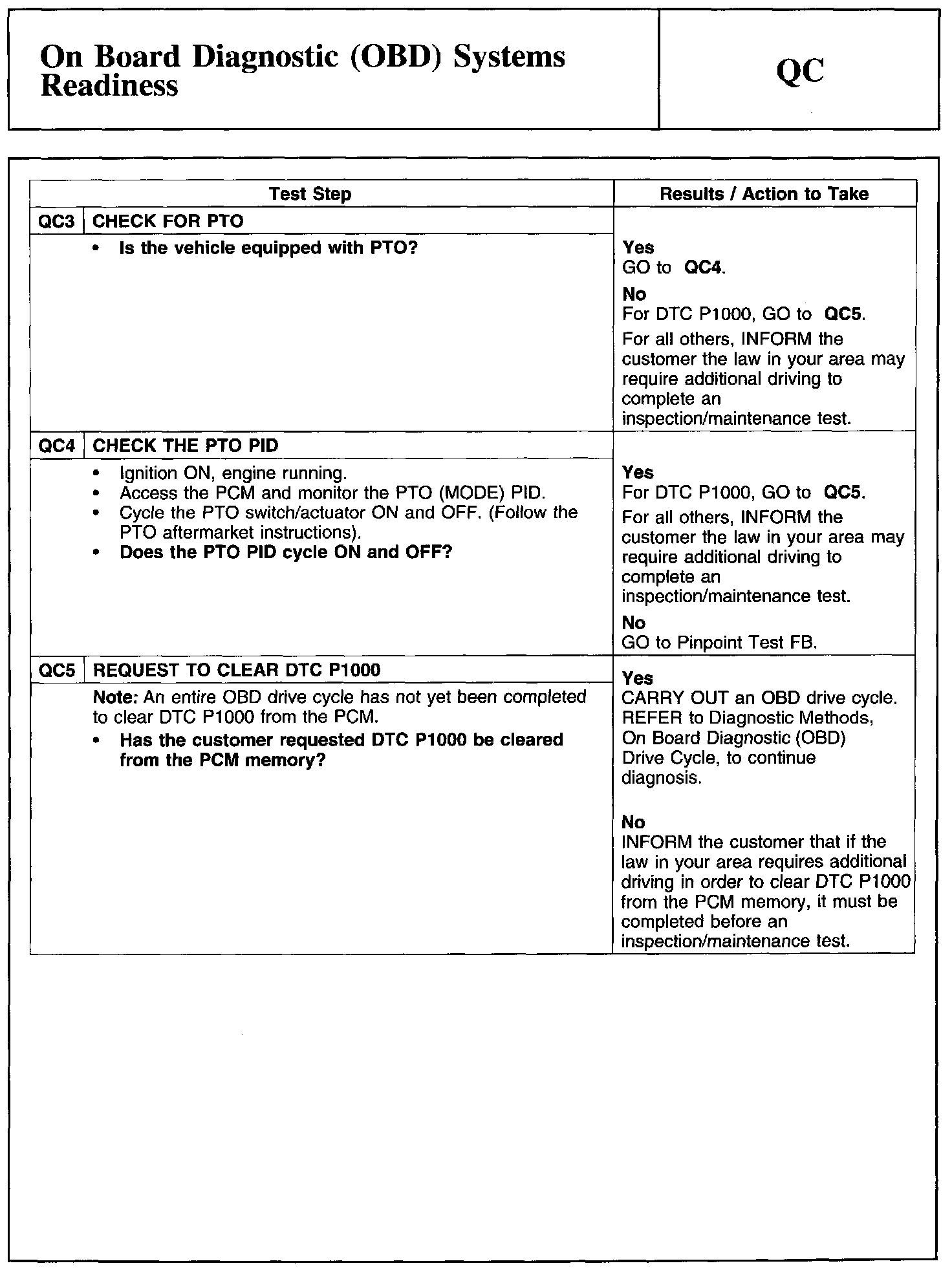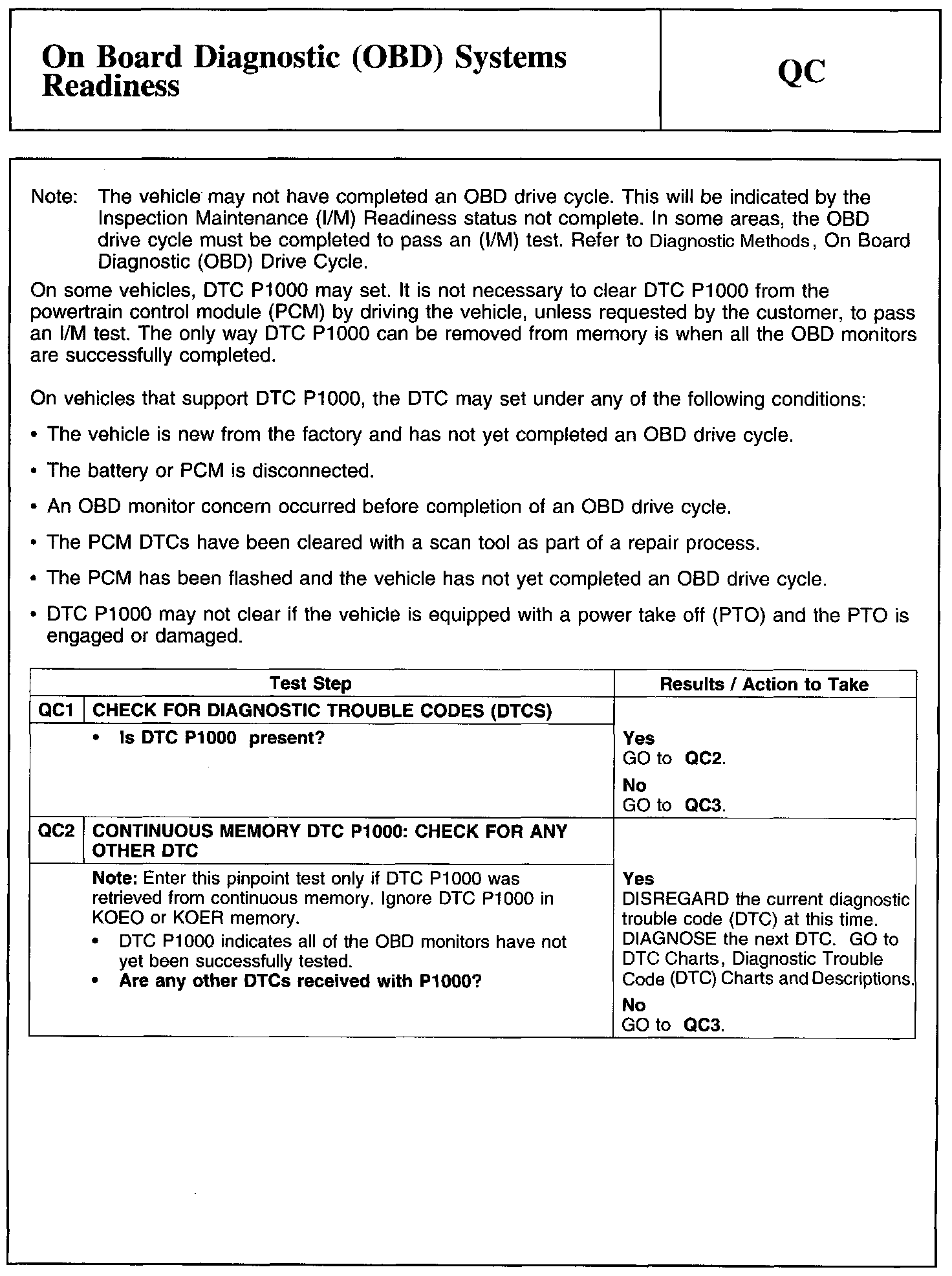 Test QC: On Board Diagnostic (OBD) Systems Readiness