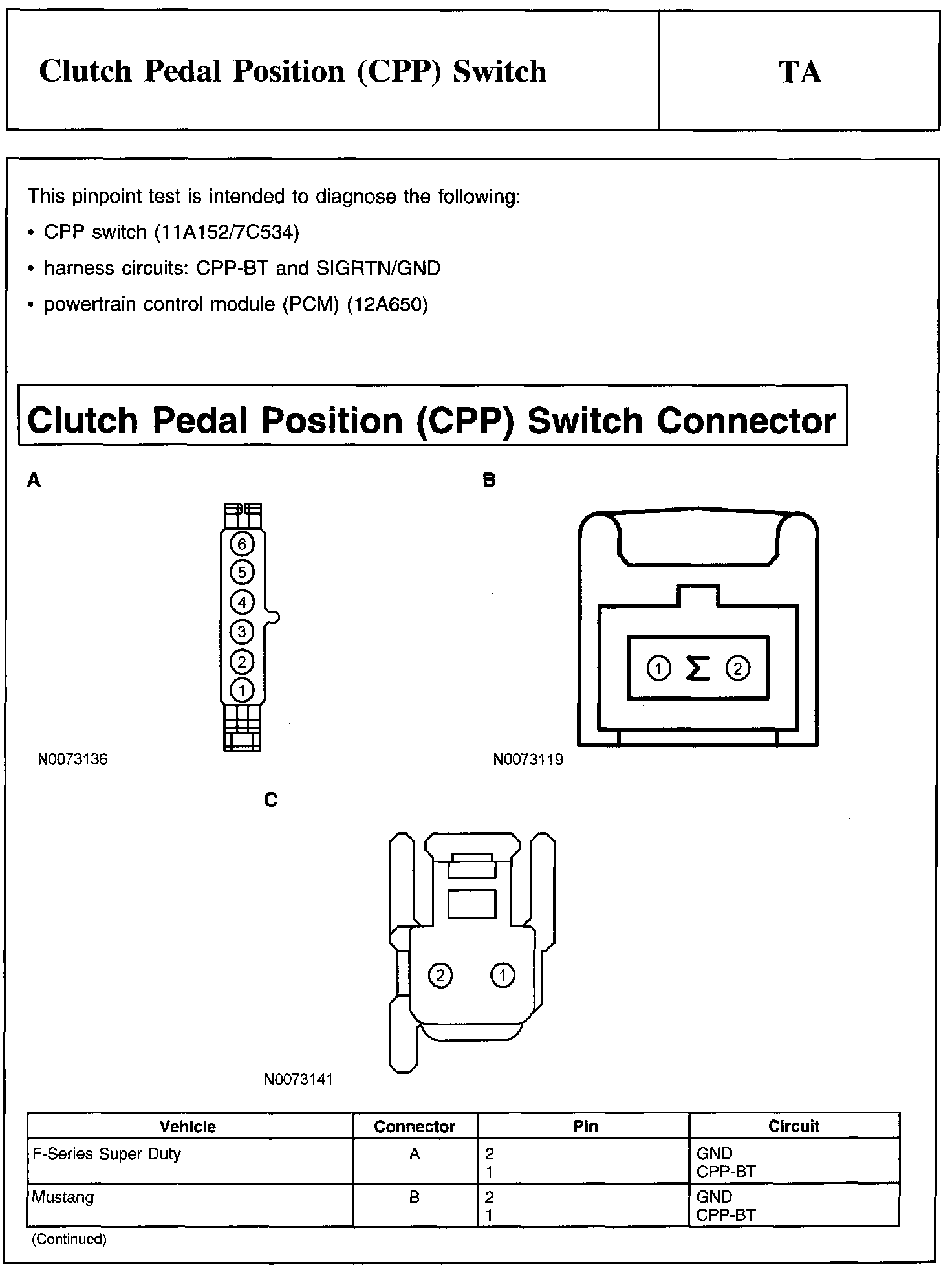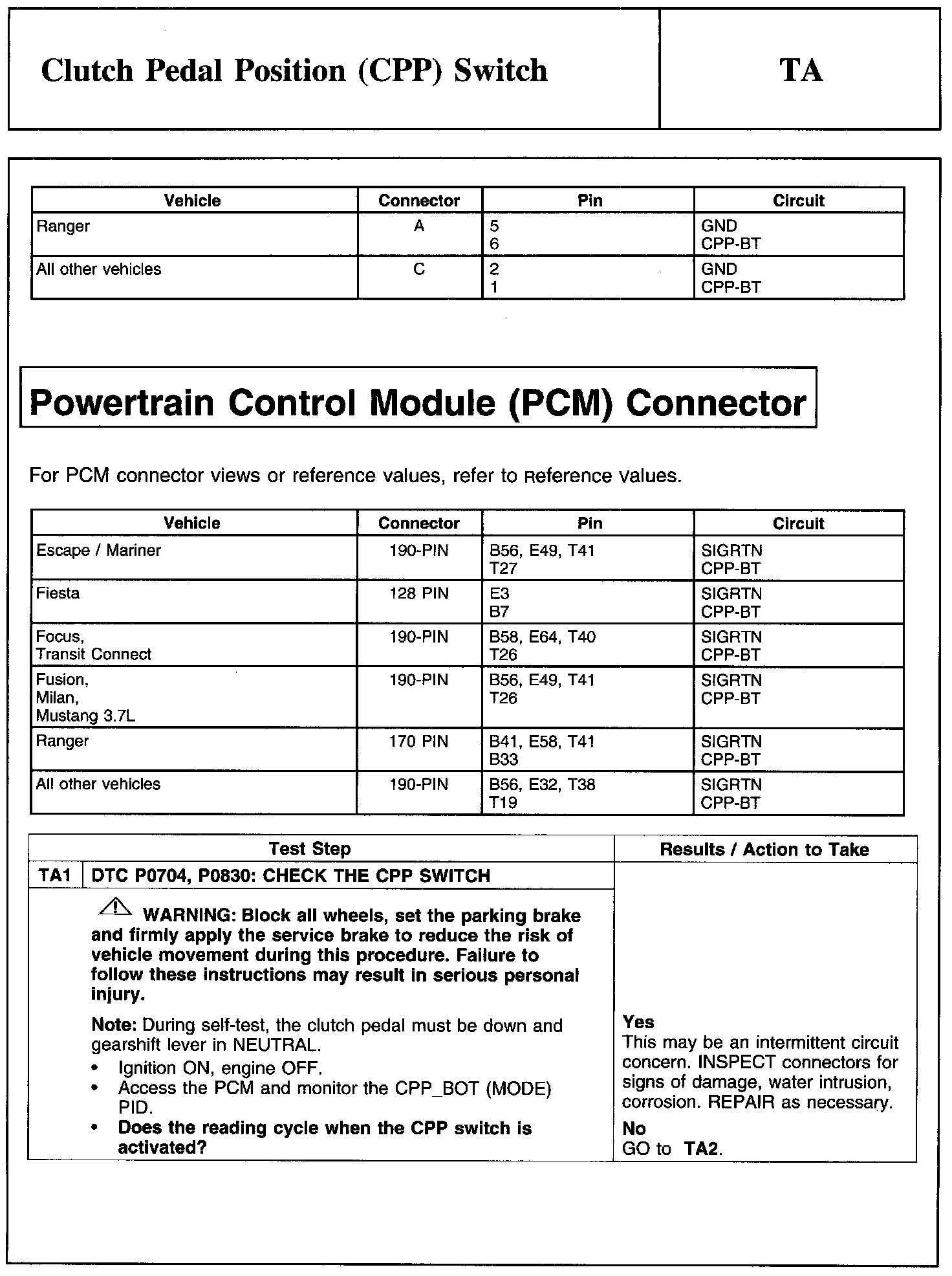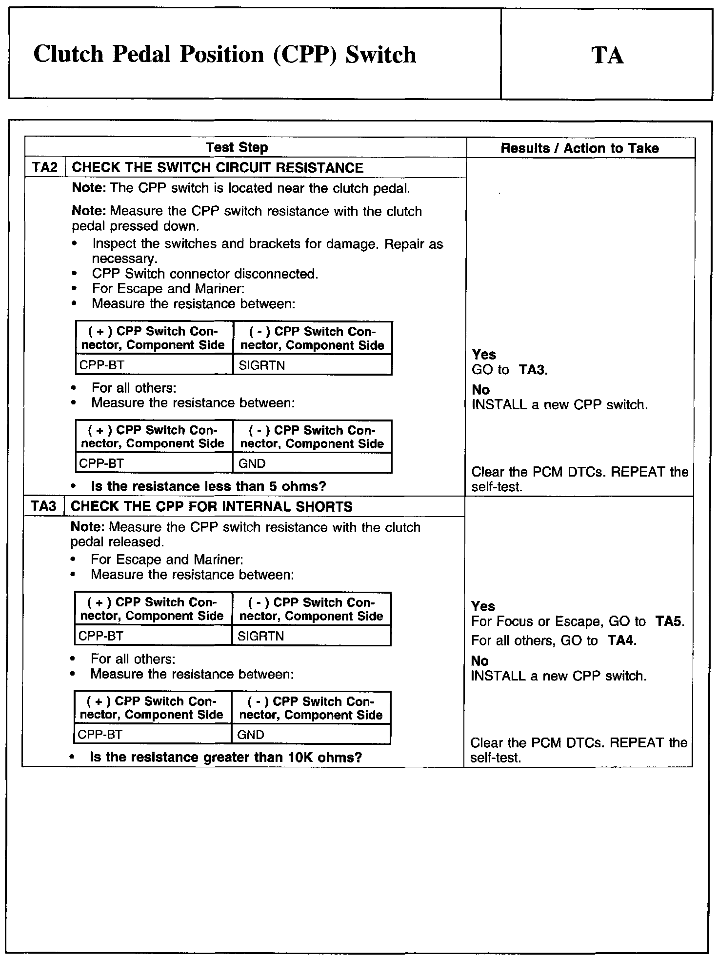 PINPOINT TEST TA: CLUTCH PEDAL POSITION (CPP) SWITCH
