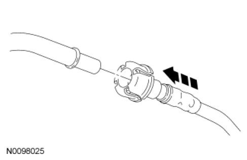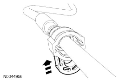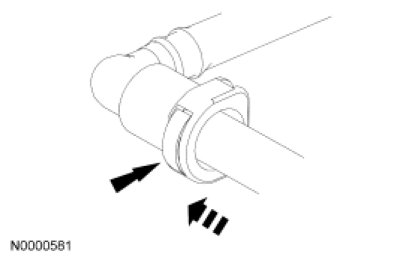 NOTICE: When reusing liquid or vapor tube connectors, make sure to use compressed air to remove any foreign material from the connector retaining clip area before separating from the tube or damage to the tube or connector retaining clip can occur. Apply clean engine oil to the end of the tube before inserting the tube into the connector.