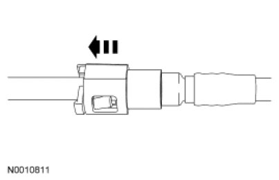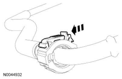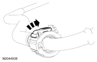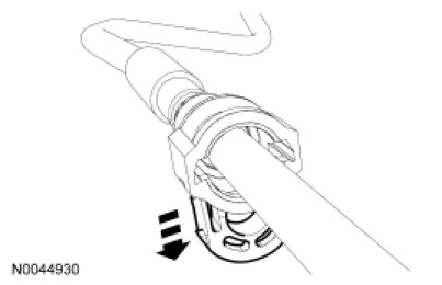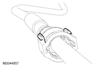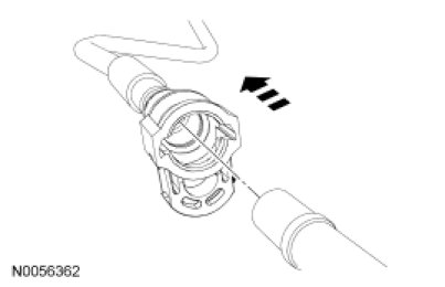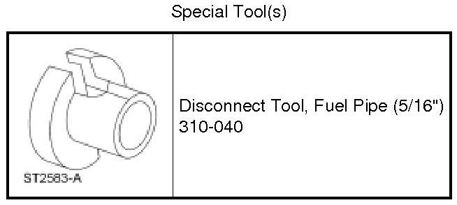 3. Install the Fuel Pipe Disconnect Tool on the tube and push into the quick connect coupling locking clip to release.