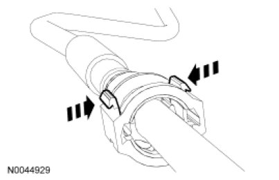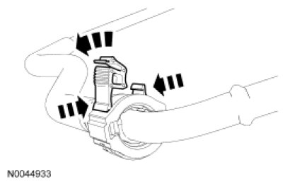 3. Squeeze the quick connect coupling retainer clip tabs to release the locking mechanism.