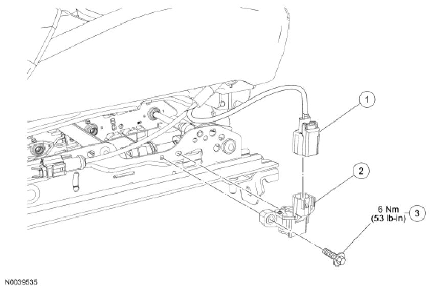 4. WARNING: Always tighten the seat position sensor retaining bolt to specified torque. Failure to do so may result in incorrect restraint system operation, which increases the risk of personal injury or death in a crash.