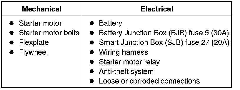 NOTE: The anti-theft system must be functioning correctly before a logical starting system diagnosis can be carried out. Address anti-theft system concerns before continuing. Refer to Anti-Theft - Passive Anti-Theft System (PATS) Testing and Inspection.