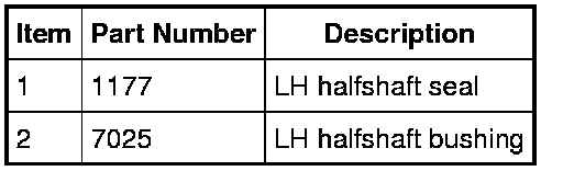 5. Using the Seal Installer and Handle, install the LH halfshaft seal.
