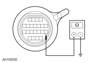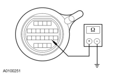 - Measure the resistance at the transaxle bulkhead electrical connector between pin 12 and ground.