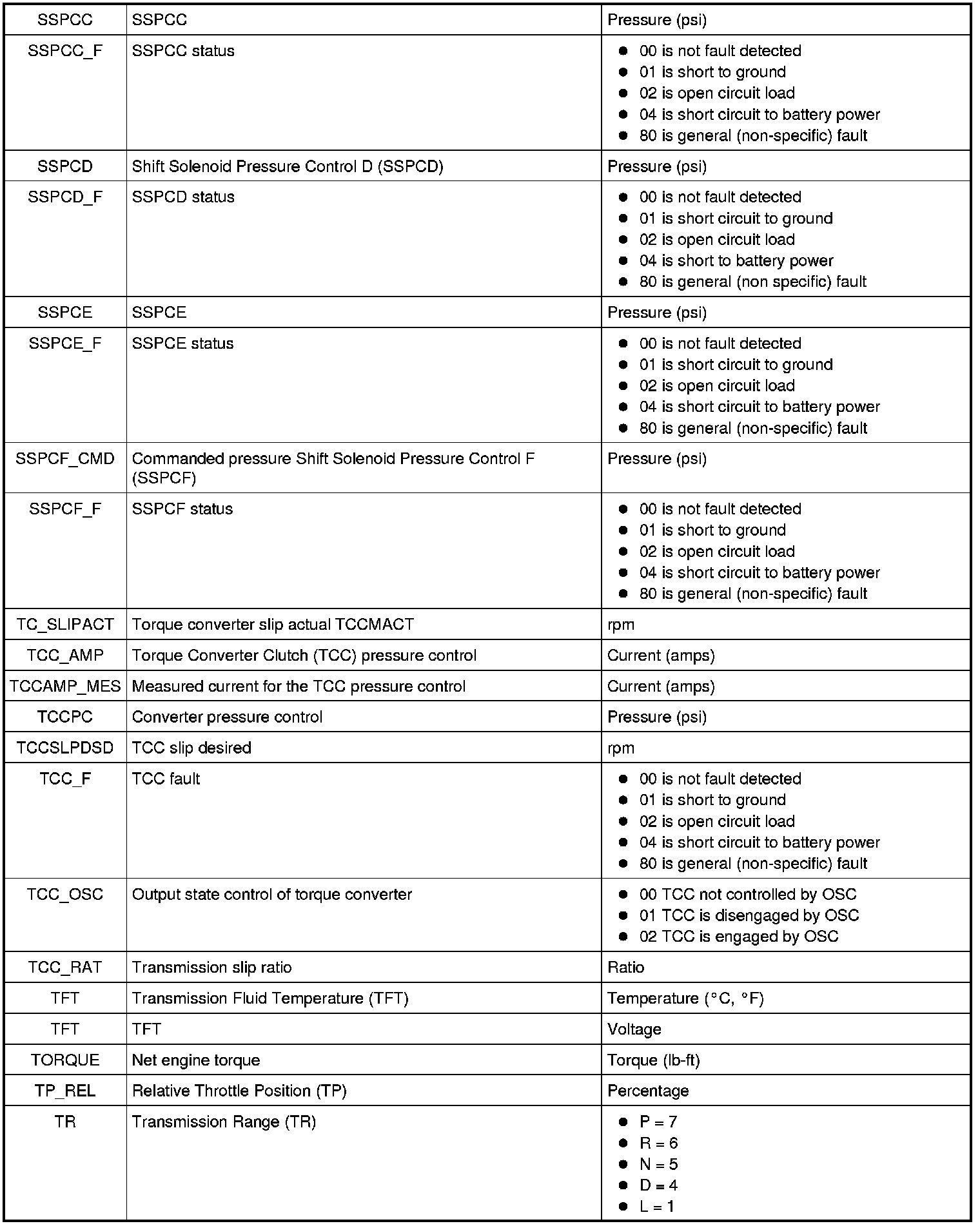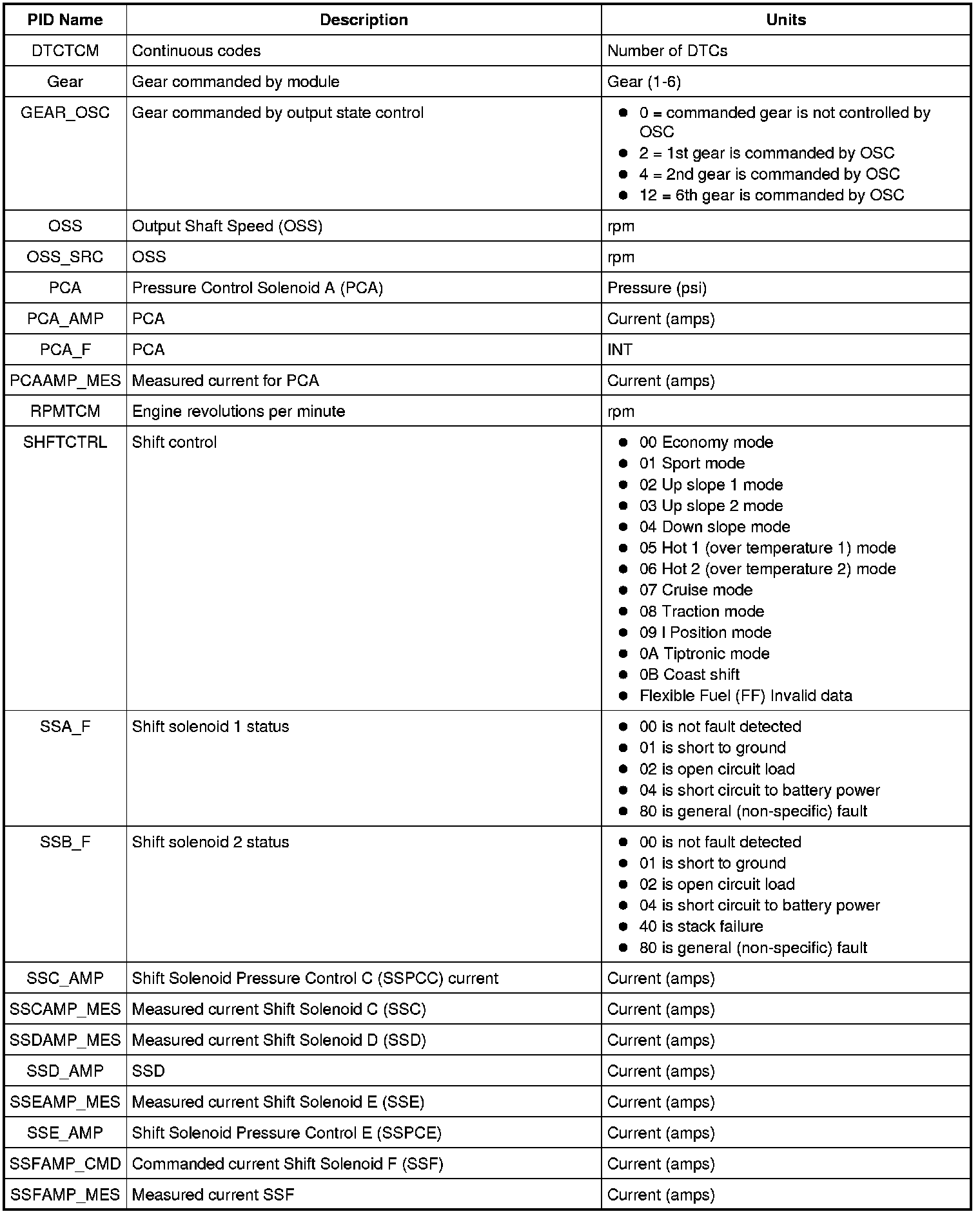 Diagnostic Parameters Identification (PID) Chart