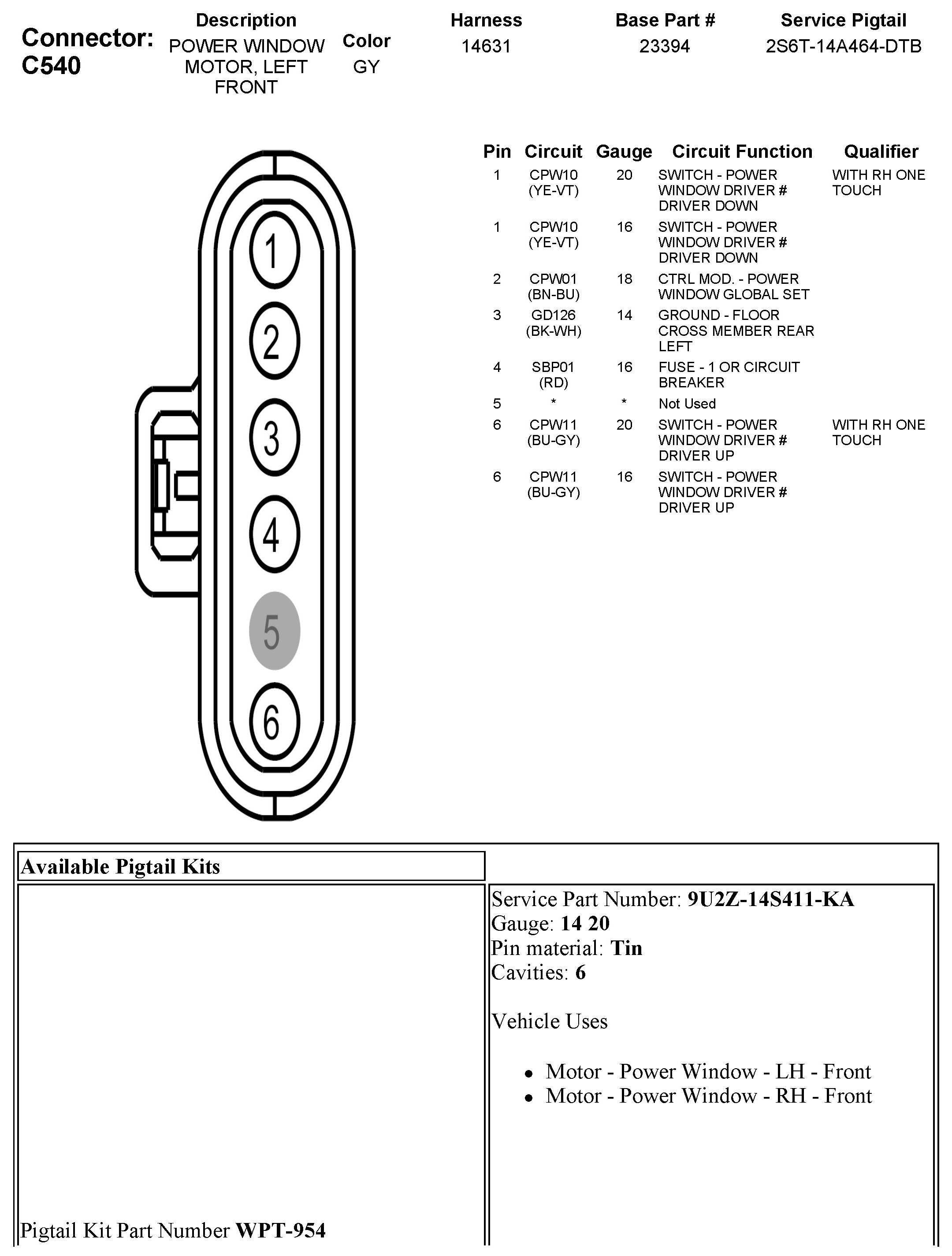 C540 Power Window Motor, Left Front