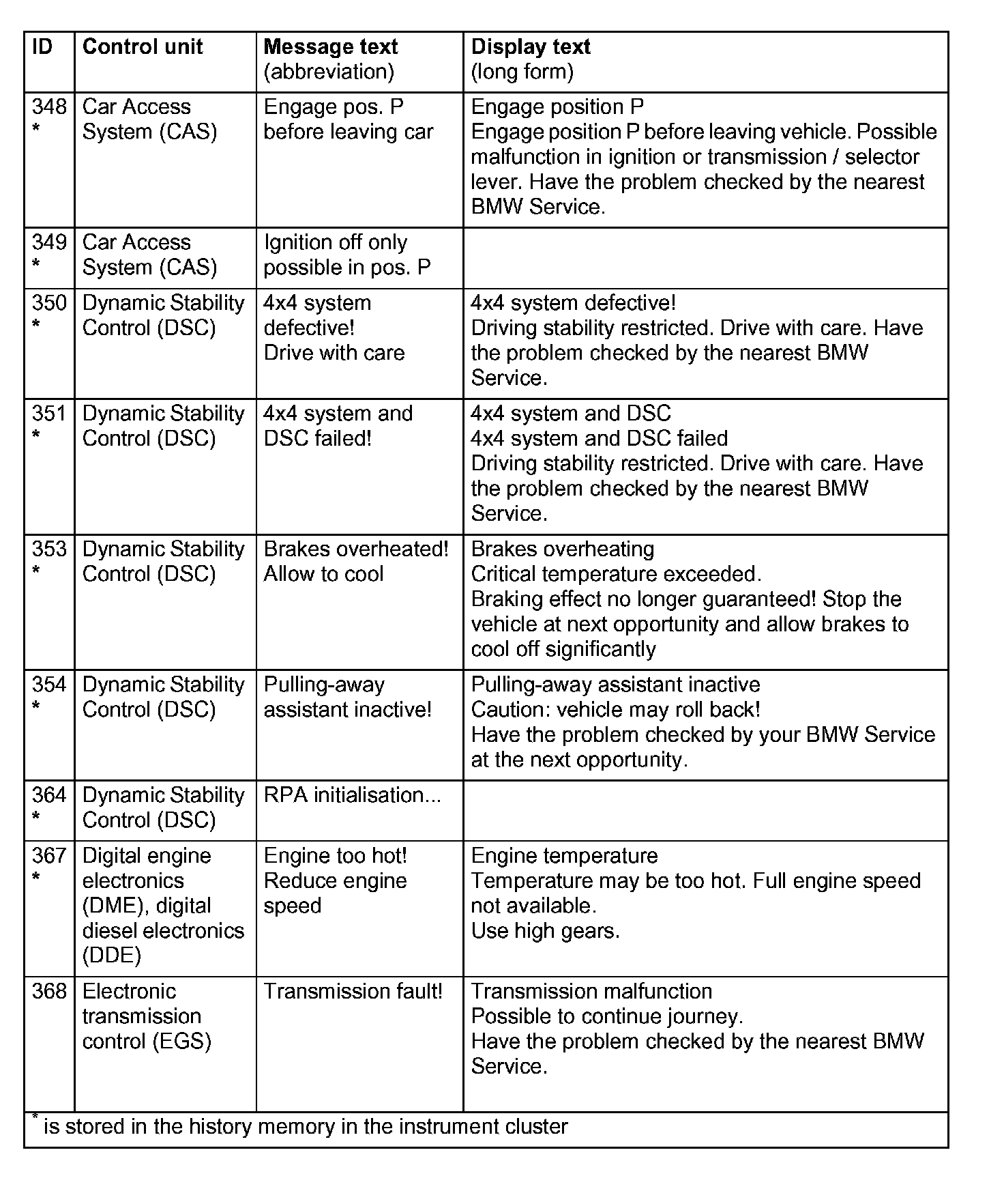 In situations where the customer complains of a check control (CC) message, but the message is currently not displayed, the last (72) CC messages are stored in the instrument cluster and can be viewed using DIS V49.0, or later. (Note: Only important messages are stored. Messages concerning e.g. door open, are not stored.)