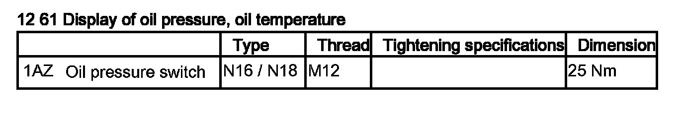 12 61 Oil Pressure, Oil Temperature, Oil Level Display