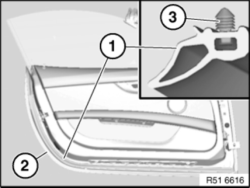 NOTE: All seals on the vehicle must be removed with the utmost care. Incorrect fitting may result in among other things wind noises and water ingress, and may compromise closing and opening comfort.