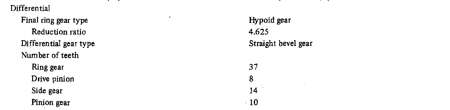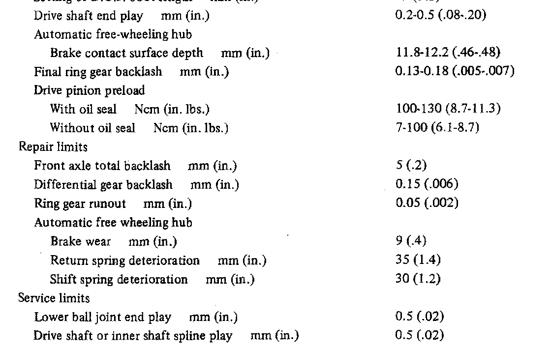KM145 5-spd M/T, Front Differential Standard Values: