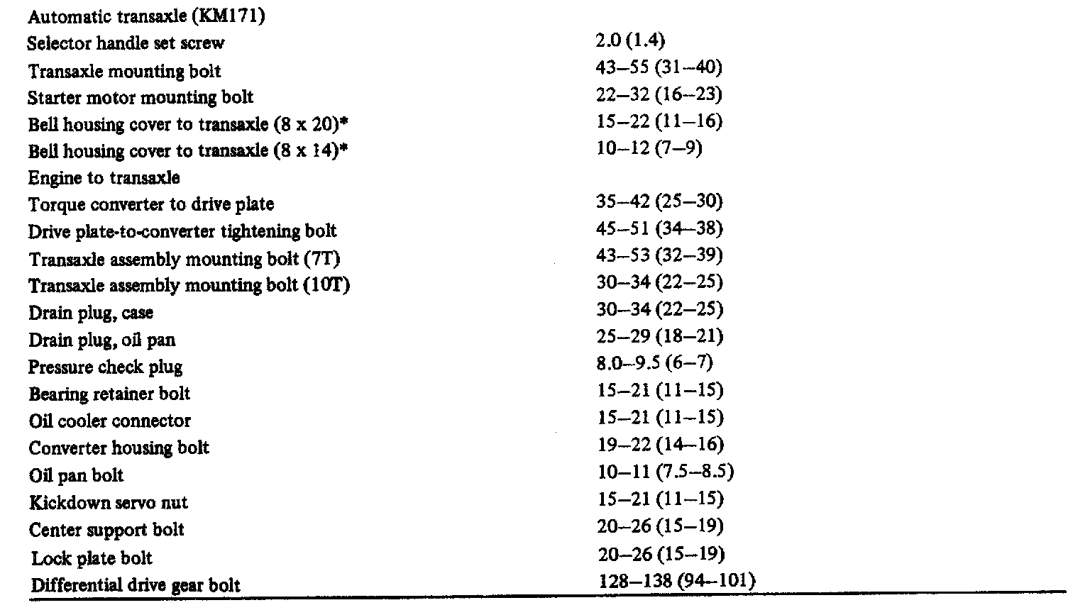 KM171 3-spd A/T, Transmission Torque: