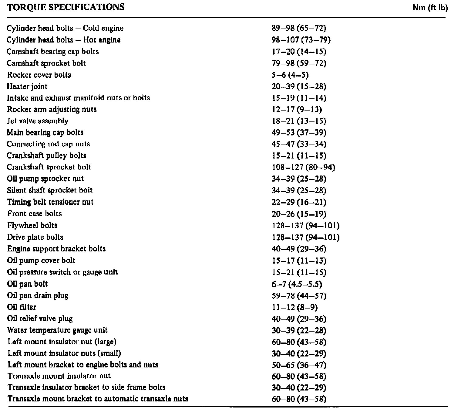 Torque Specifications