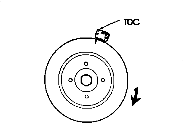 9. Pull the truck forward until the crankshaft pulley timing mark aligns with the TDC mark.