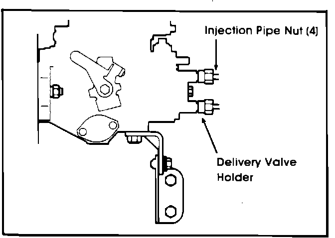 3. Loosen all 4 Injection pipe nuts. Do not loosen delivery valve holder.