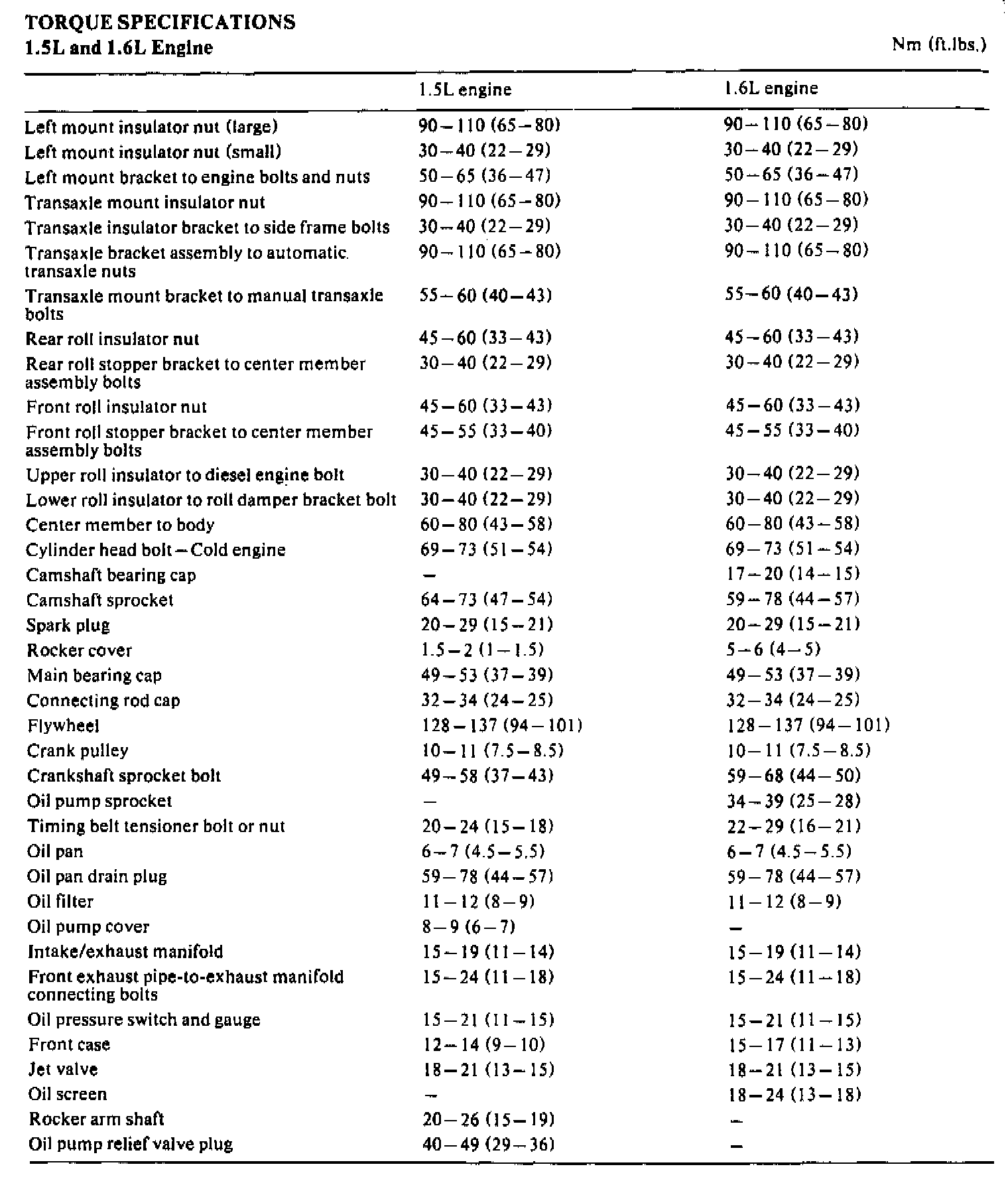 Torque Specifications