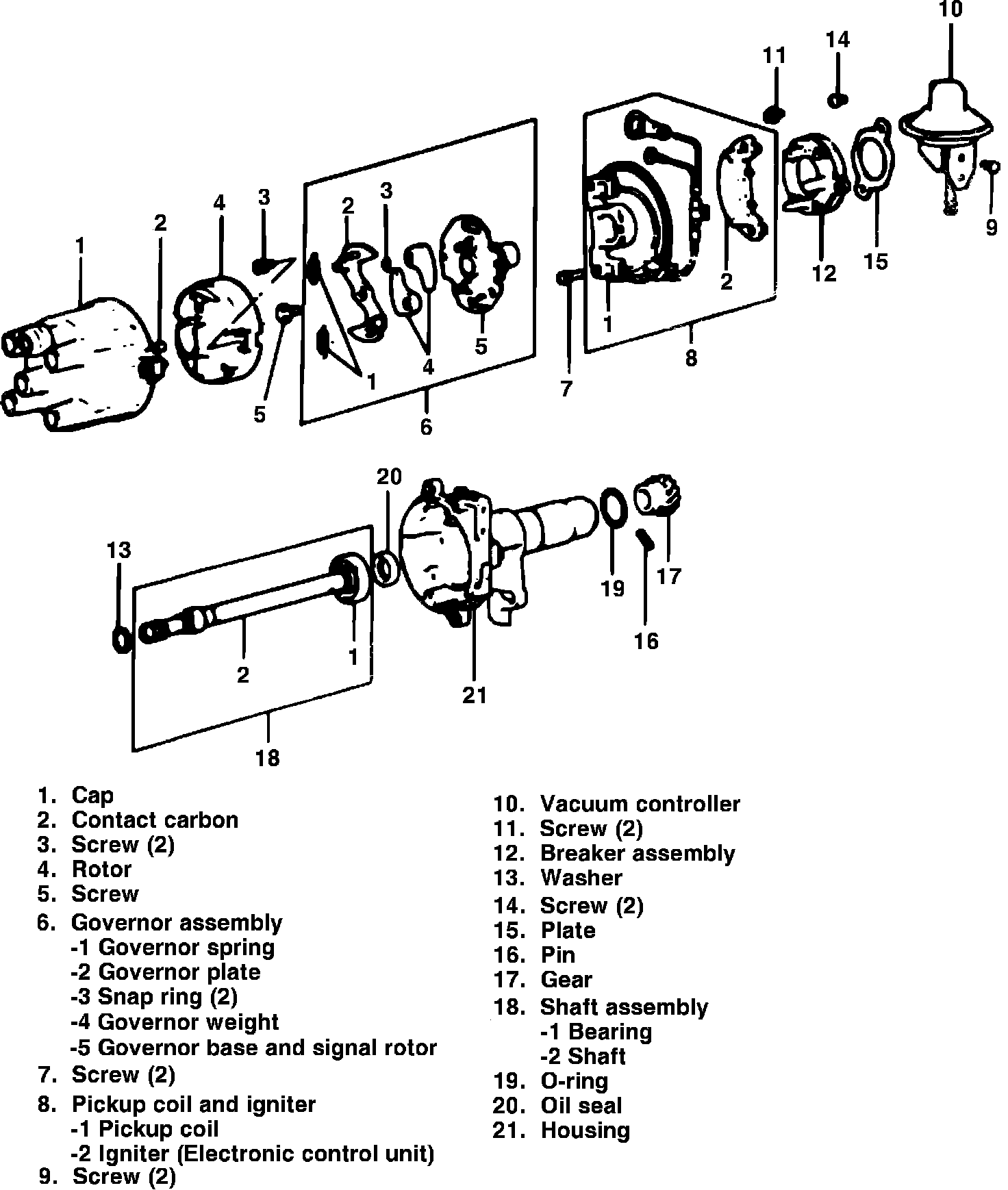 Refer to Figs. 6 and 7 for distributor disassembled view, and proceed as follows:
