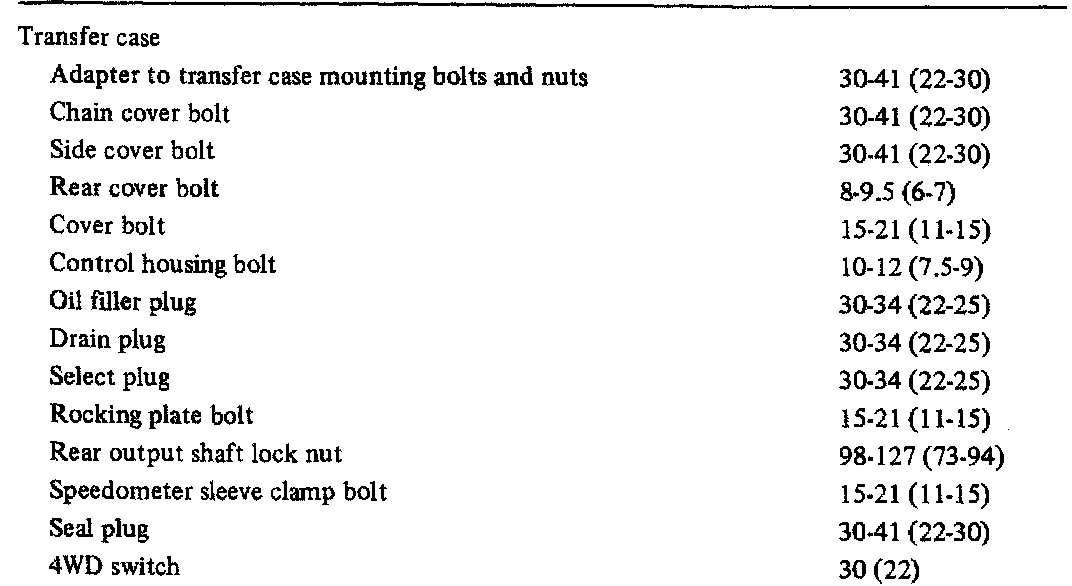 Transfer Case Torque Data