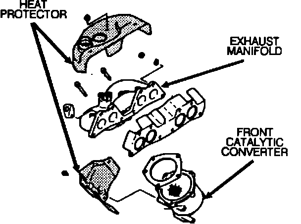 NOTE: It is not necessary to replace the exhaust manifold even though the manifold has cracks if there is no sign of exhaust gas leakage on the back side of the heat protector.