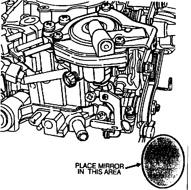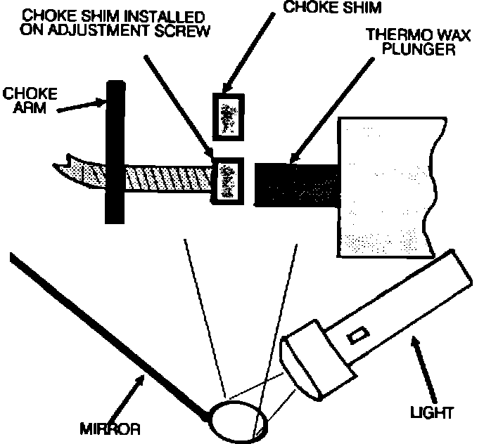 A mirror must be placed beside the carburetor next to the thottle lever. This will allow you to see the area that the choke shim must be installed in.