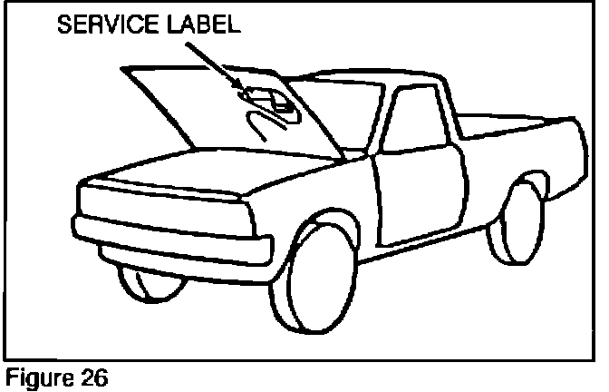 Install the new Service Label contained in the EMR-90-002 emission kit (Figure 25) over the old label on the underside of the hood (Figure 26).