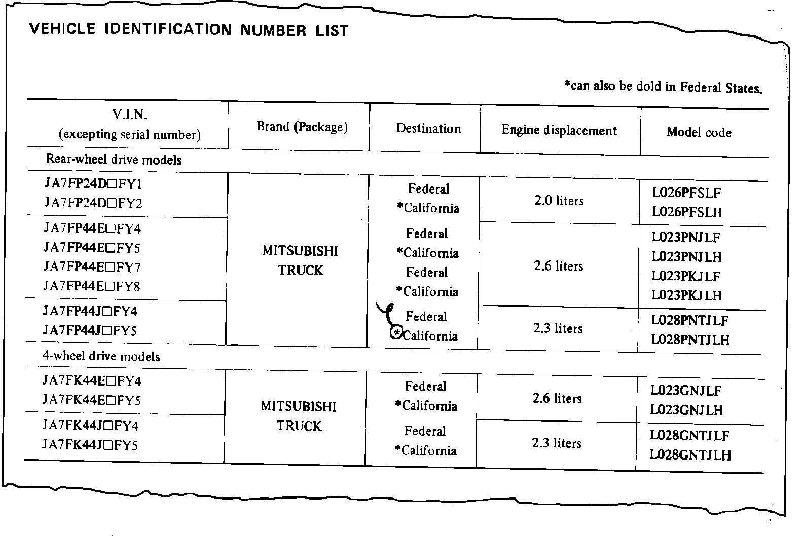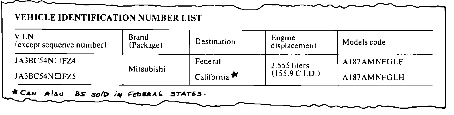 3. Two new model codes are added for Federal and California Starions. The California Starion is certified as a 50-state vehicle.