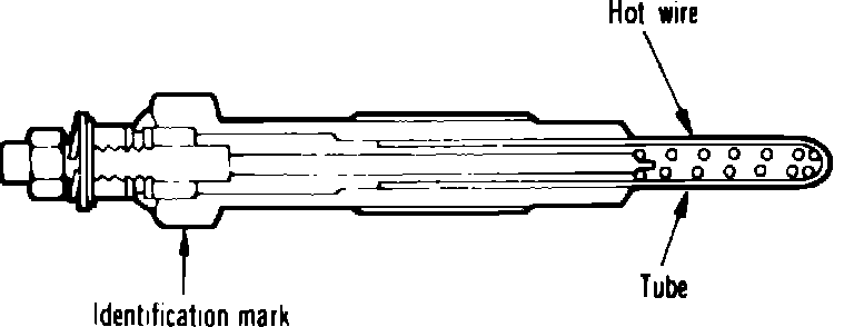 Check resistance between glow plug terminal and body, Fig. 35. resistance should be .1 ohm at 68°F.