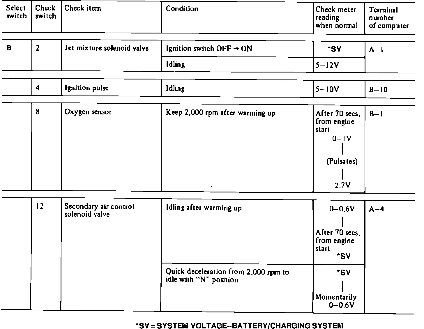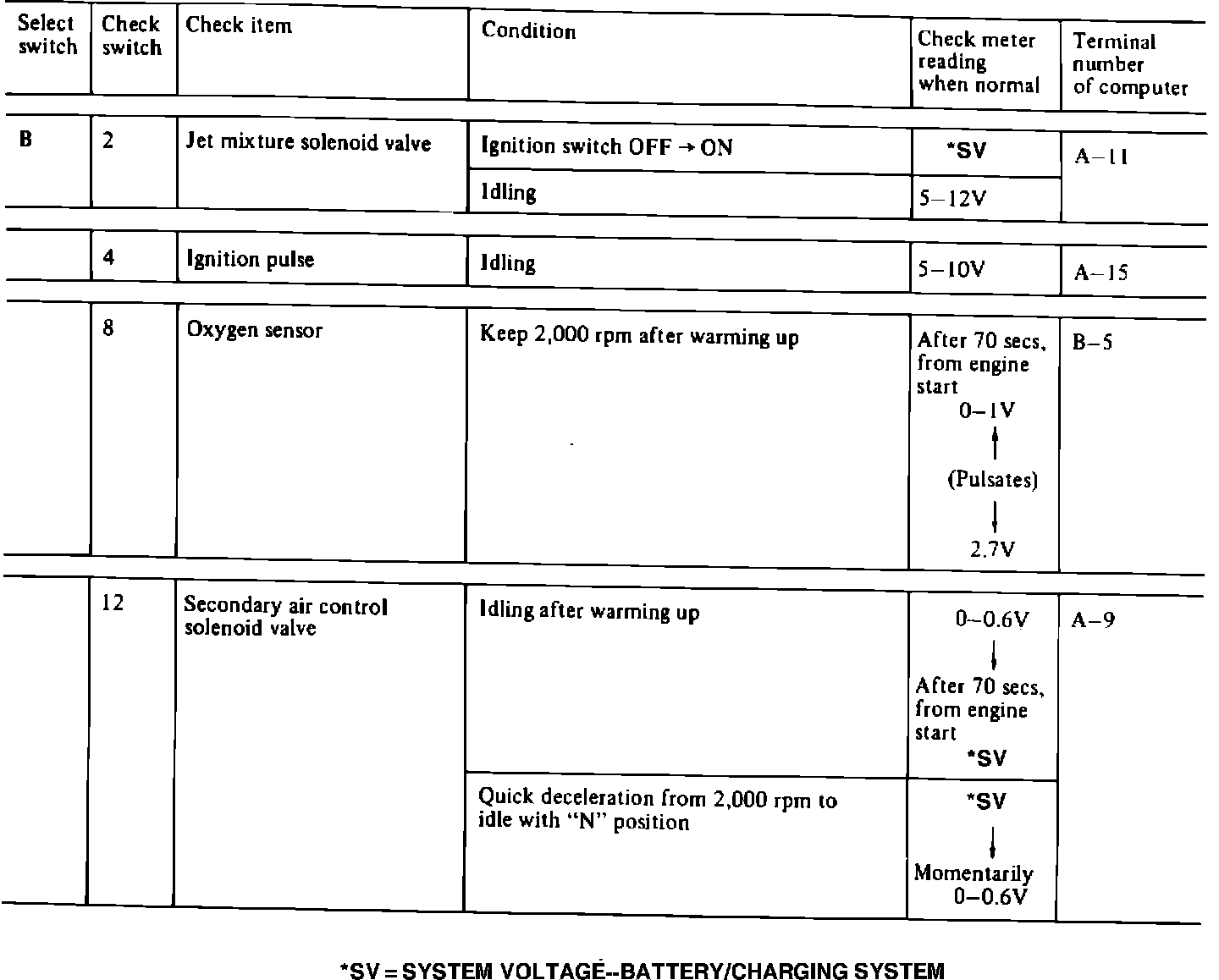PURPOSE This bulletin is issued to update FBC System Check Procedure Charts in 1985 Service Manuals. The charts in the Service Manuals are not incorrect. The reason for updating them is to standardize on certain voltage values. When the meter reads system voltage, we have substituted the term "System Voltage" for the actual expected voltage range. Because system voltage can be affected by external influences, the general term is less likely to be misunderstood than actual voltage.
