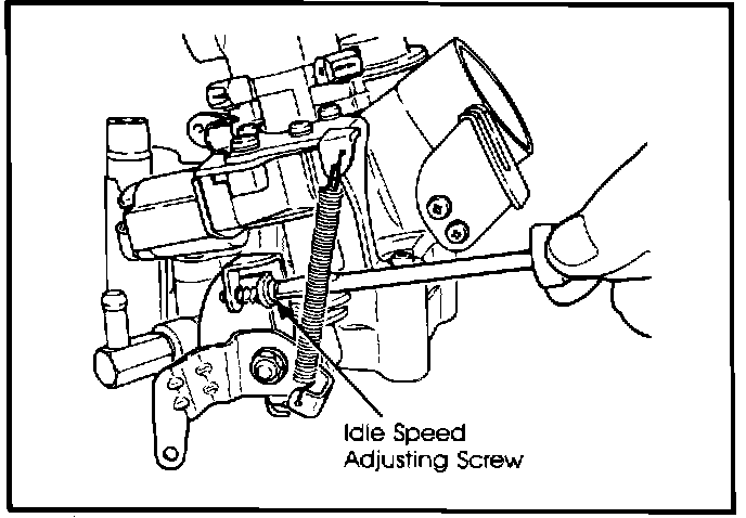 4. After the engine has idled for 30 seconds, adjust the idle speed to specifications in table 1 using the Idle Speed Adjusting screw shown in Figure 3.