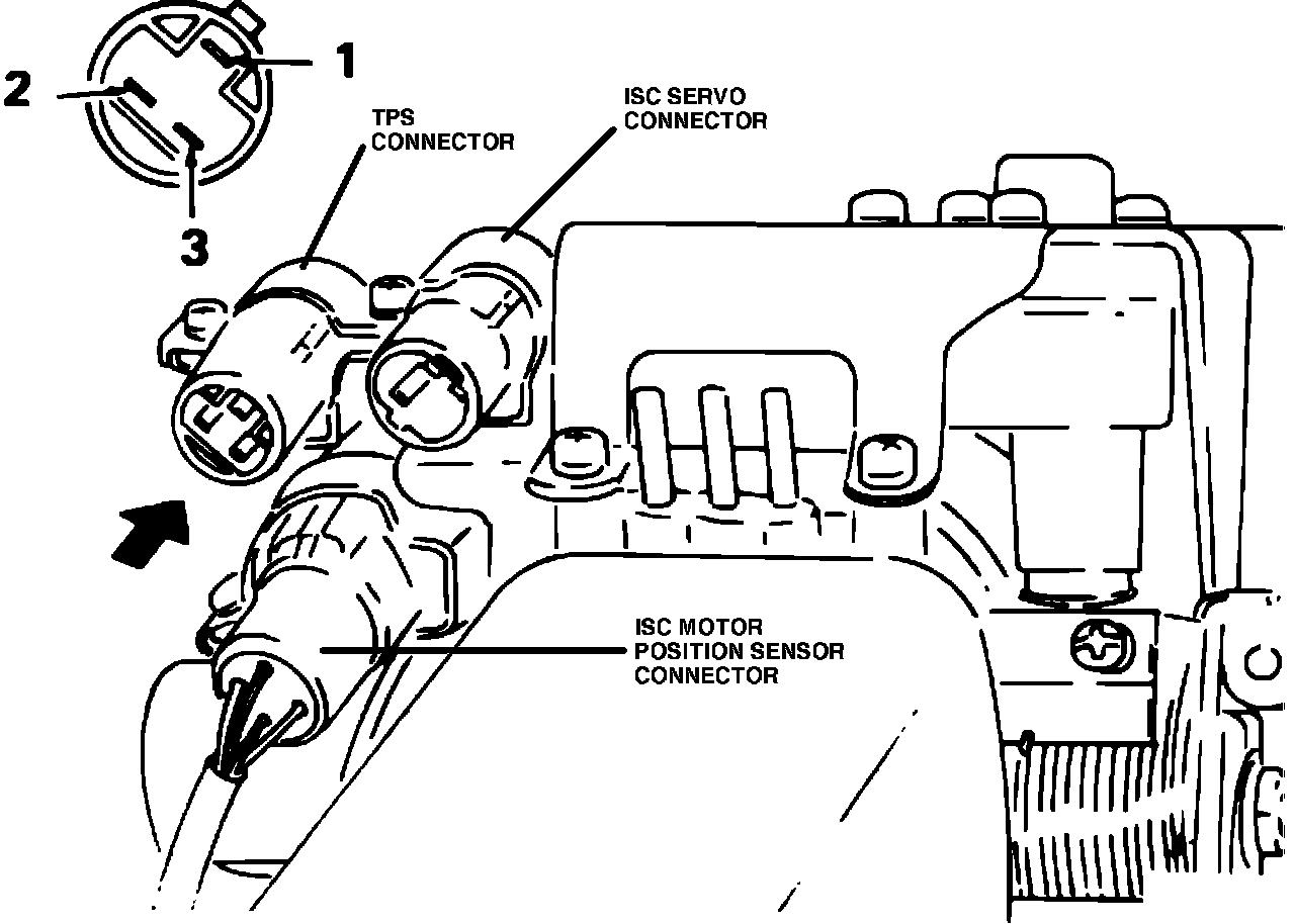 3. Connect ohmmeter across terminals 1 and 3 or 2 and 3, then check to ensure that when throttle valve is slowly operated from idle to fully open position, resistance changes smoothly. Replace sensor as required.