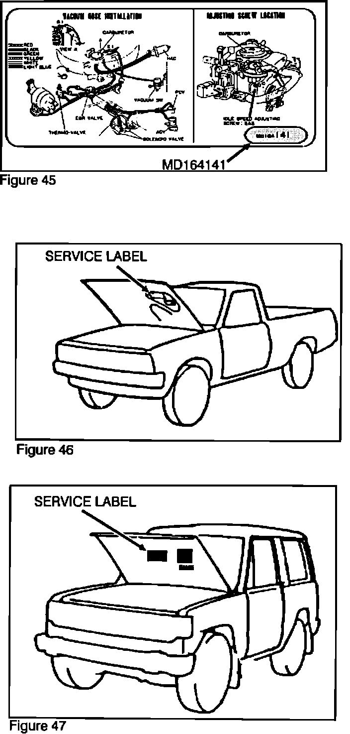 1. Check the part number printed on the existing Service label (Figure 45), Truck-Figure 46, Montero-Figure 47.