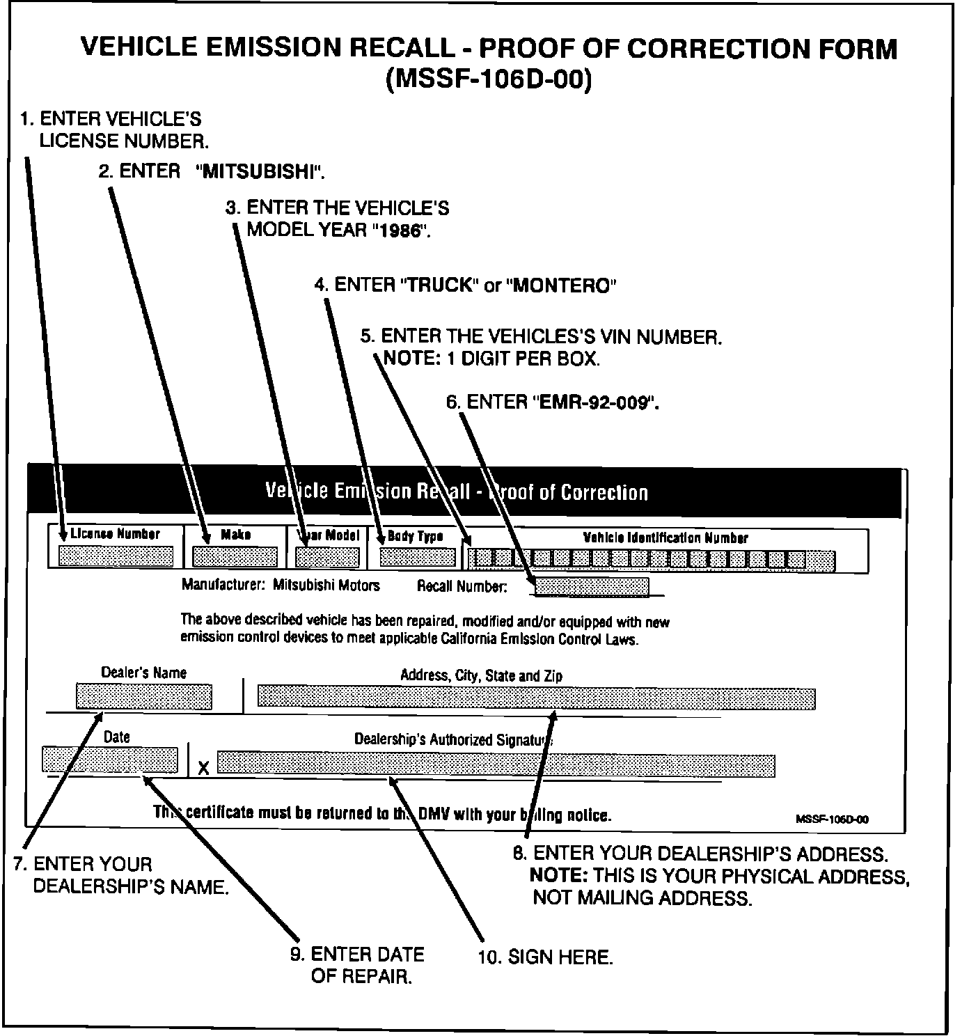 COMPLETING THE VEHICLE EMISSION RECALL - PROOF OF CORRECTION FORM