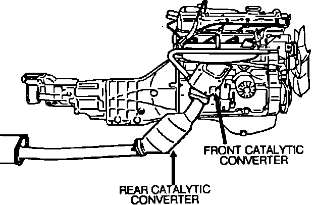 If during the testing procedures it is found that the front catalytic converter (Figure 4) has failed, proceed to Exhaust Manifold Inspection, then replace the front catalytic converter.