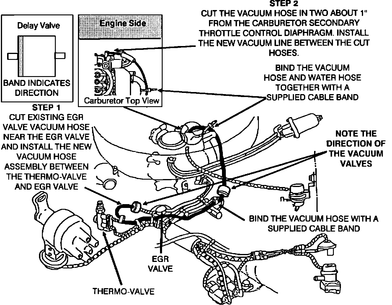 2. Cut the vacuum hose in two near the EGR valve as shown in Step 1 of Figure 21.