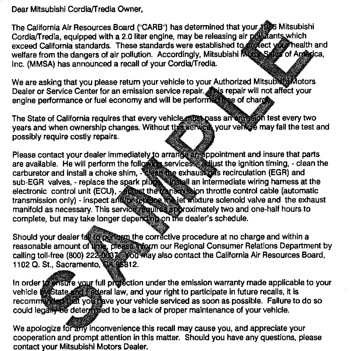 Recall - Fuel/Emission Systems Modification
