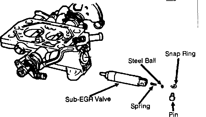 NOTE: If the Sub-EGR valve will not come out of the carburetor, place a small phillips screwdriver in the pin hole for use as a handle.