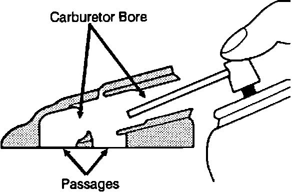 4. Clean the plunger hole in the carburetor with carburetor cleaner (Figure 15). You may want to use a small screwdriver to loosen any carbon deposits from the passages in the under side of the carburetor.