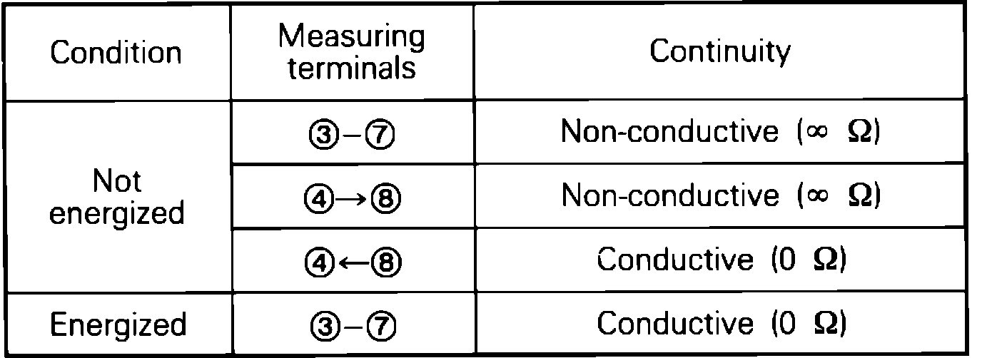 2. Check continuity between control relay terminals, Fig. 30, with relay coil energized and not energized as shown, Fig. 32. To energize coil, L3, apply battery voltage across terminals 8 and 4.