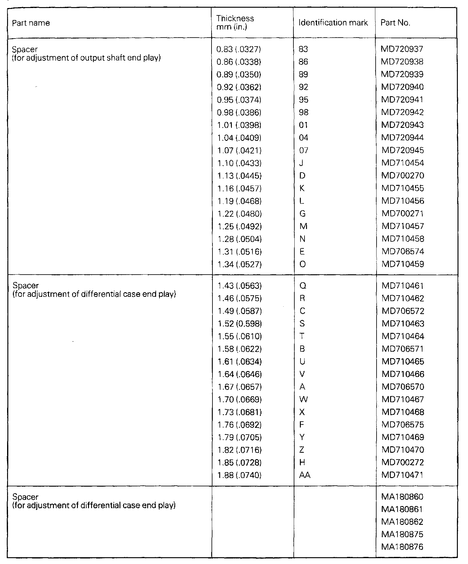 KM210A 5-sspd M/T, Output Shaft End Play / Differential End Play: