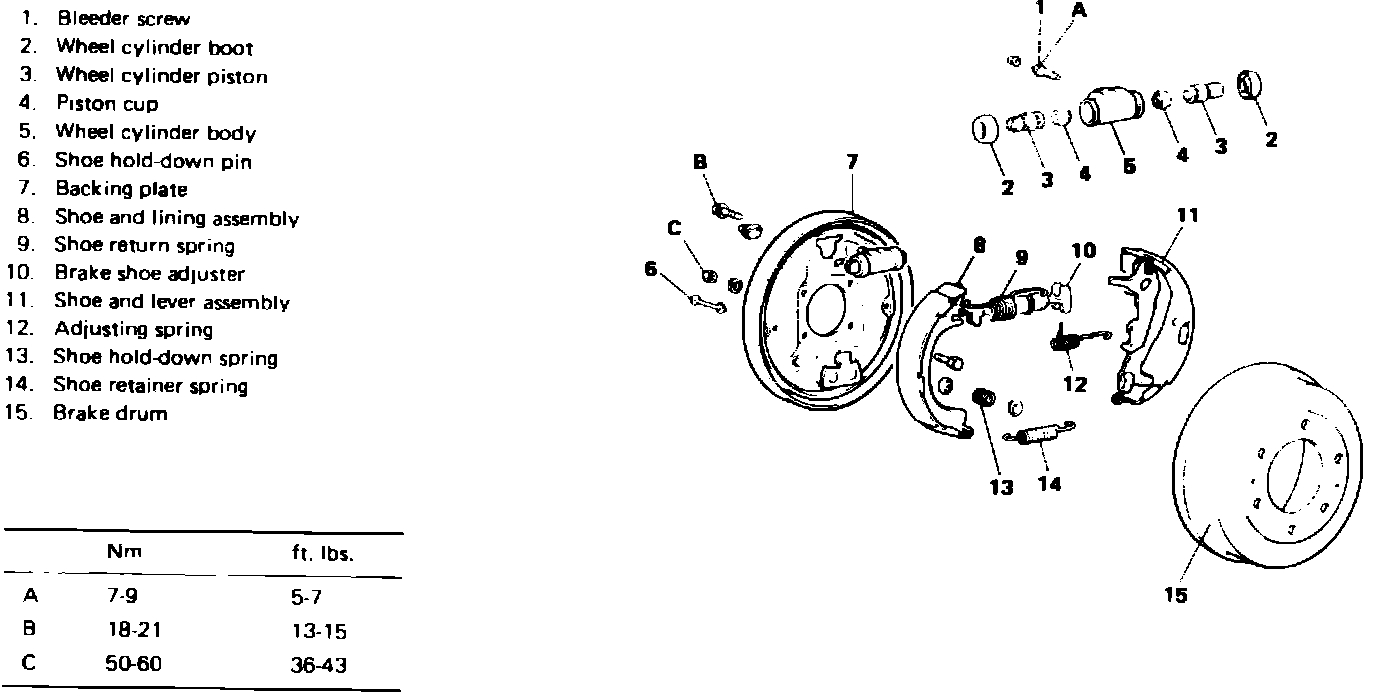 Fig. 3 Exploded view of drum brake assembly.:
