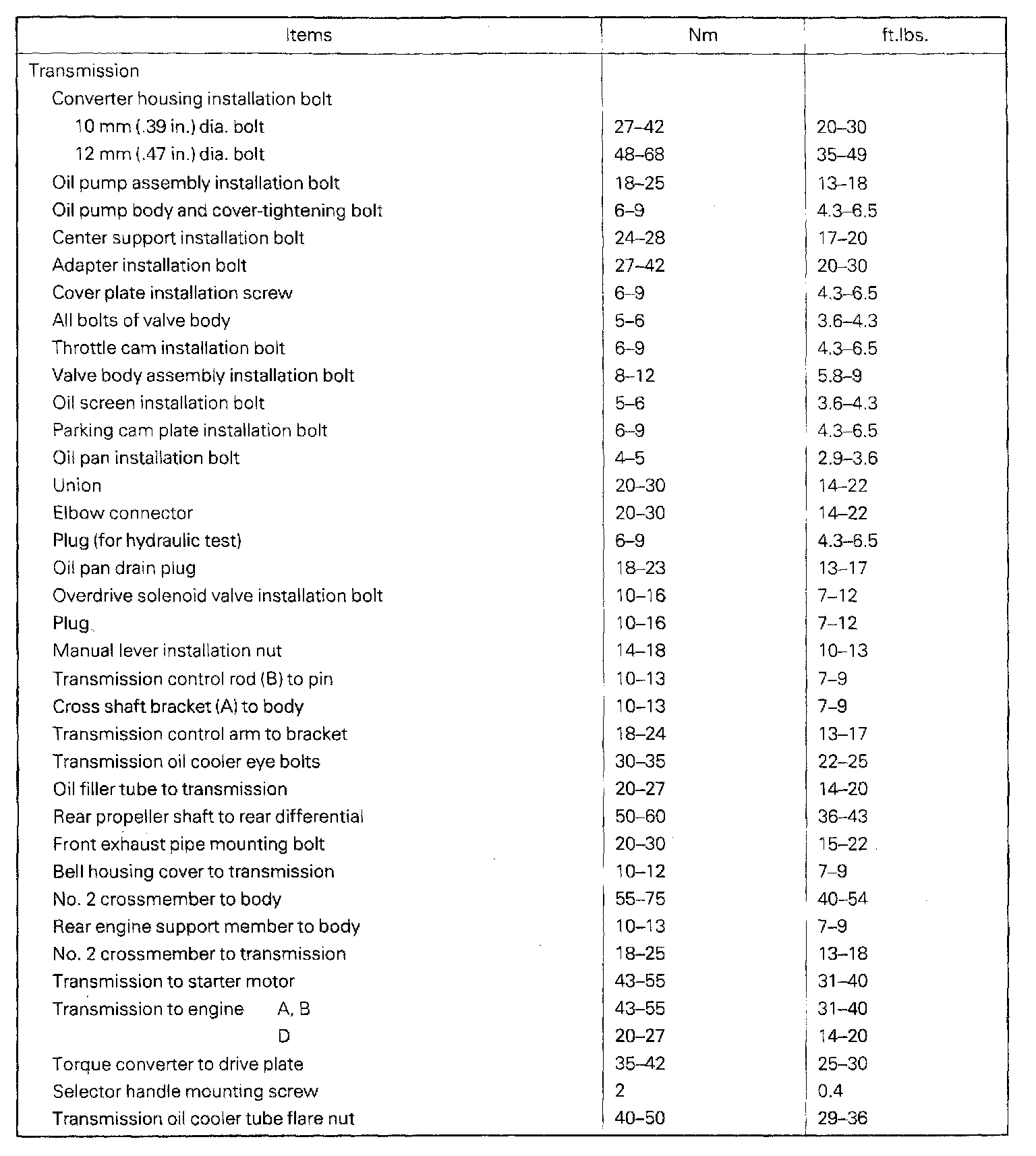 KM148 4-spd A/T, Transmission Torque: